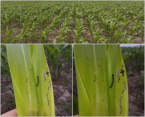 Con respecto al estado sanitario se ha detectado la presencia de gusano cogollero (Spodoptera frugiperda), por lo que se encuentran realizando los controles correspondientes. Foto N°1.