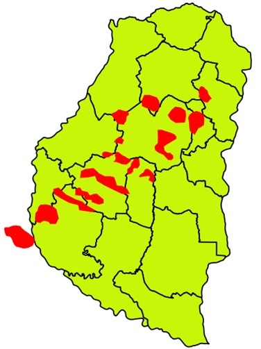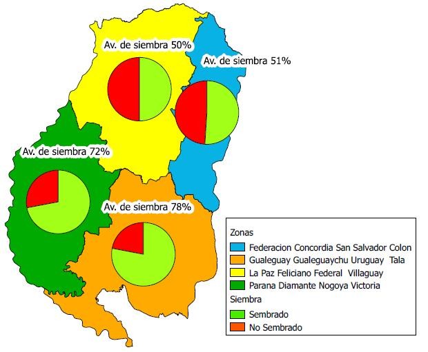 La zona de mayor progreso es la sur (78%), que incluye los departamentos Gualeguay, Gualeguachú, Tala y Uruguay (ver Mapa Nº 1).