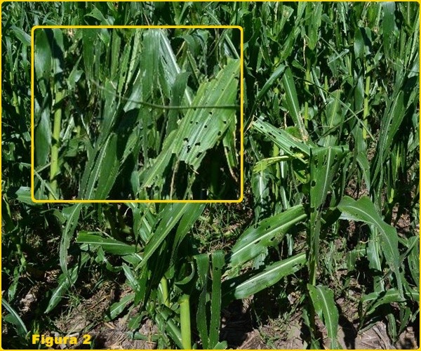 Las plantas más afectadas por cogollero fueron las más dañadas, magnificándose la pérdida de área foliar activa para el desarrollo vegetativo y reproductivo del maíz (Figura 2).