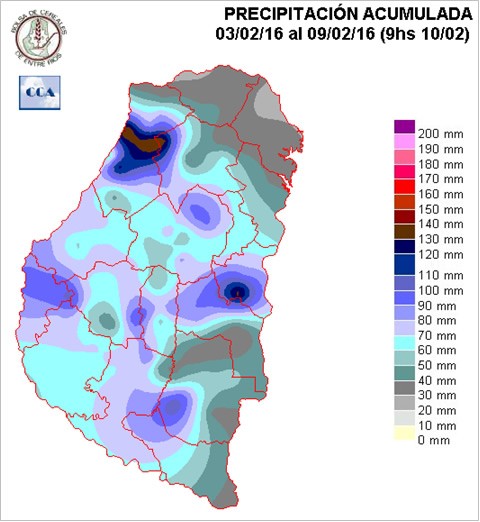 En el mapa se observan vastas zonas que encuentran un piso en acumulados cercanos a los 70 milímetros, pero se han reconocido mediciones puntuales que llegan duplicar esta marca y que han generado serios inconvenientes en escala reducida, como cortes temporarios de caminos y anegamientos de los bajos.