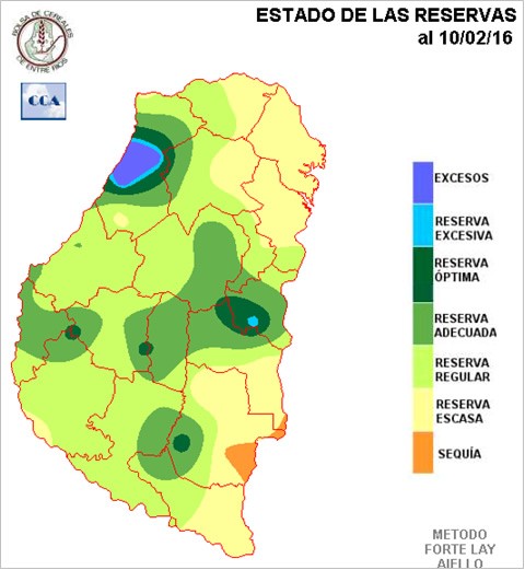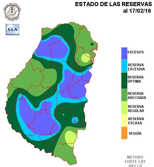 Con el curso de jornadas secas y cálidas desde el último sábado, las reservas de humedad se han optimizado en gran parte del territorio entrerriano. No se observan zonas donde las reservas estén por debajo de un nivel adecuado.