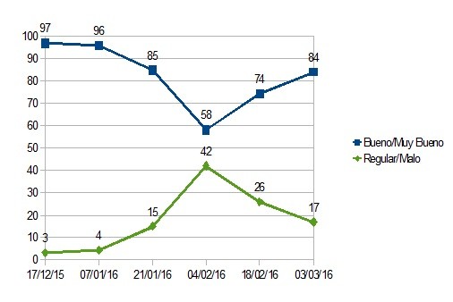 El Gráfico N°1 muestra la evolución de la condición de soja de primera desde la segunda quincena de diciembre al día de la fecha.