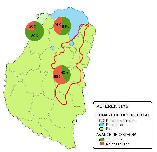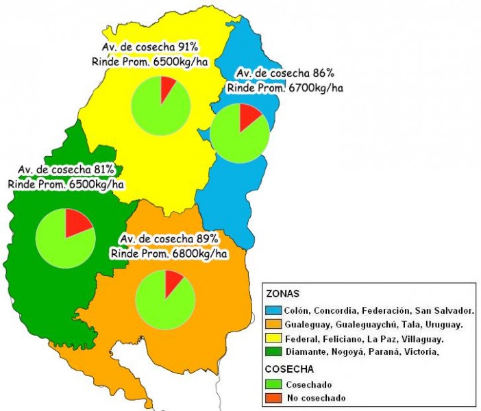 En Entre Ríos se han trillado 35.700 ha, lo cual representa el 50% del área total, debido a que en el ciclo 2015/16 la superficie implantada fue de 71.400 ha.