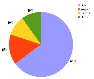 En el Gráfico Nº 3 se ve que las variedades más utilizadas son: Gurí 65%, Yeruá 15%, Cambá 10% y dentro de la categoría otros (10% restante) se encuentran algunos híbridos y variedades como: Paso 144, Puitá, Irga 424, Yamaní y Fortuna entre otros.