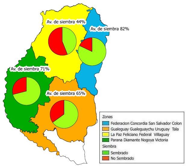 La distribución de las últimas precipitaciones han privilegiado al sector centro – norte y brindado menor cuantía al centro – sur, donde en varios sectores las tareas se han detenido a la espera de lluvias que permitan mejorar la humedad para una correcta germinación de las semillas.