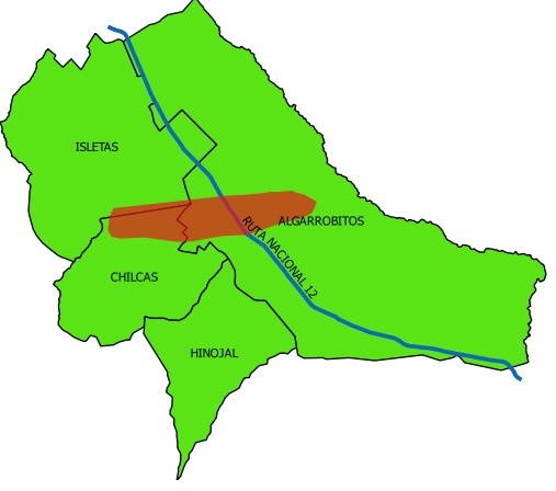 El evento climático comprendió parte de los distritos Isletas (Dpto. Diamante), Chilcas (Dpto. Victoria) y Algarrobitos (Dpto. Nogoyá). Se estima que dentro de este sector existe una superficie cercana a las 200 ha de maíz de primera, 1.200 ha de soja de segunda y 1.000 ha de soja de primera, además de algunos lotes de sorgo y pasturas.