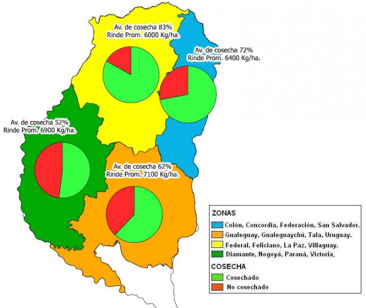 A nivel provincial se ha recolectado el 30% del área total sembrada en Entre Ríos, que fue de 64.200 ha.