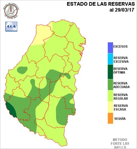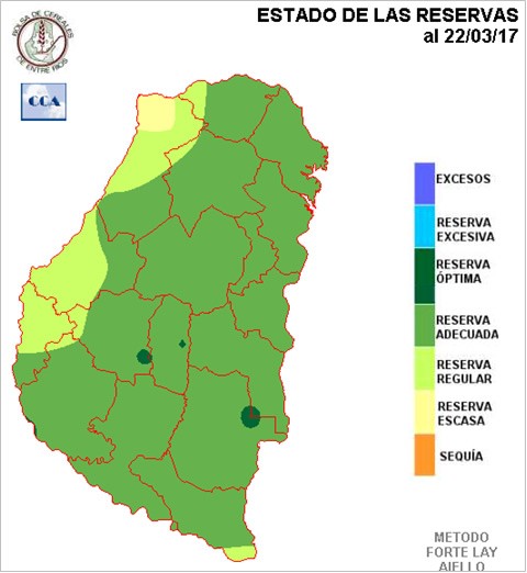 El departamento La paz y algunas áreas del centro de la provincia resultan con un balance hídrico regular, el cual obviamente responde a la escasa oferta de agua. Los excesos se concentran en áreas del noreste.