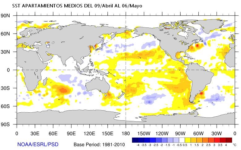 1. El calentamiento del litoral Atlántico sigue presente como indicador desfavorable para el desarrollo del mes de mayo. Este forzante de escala regional gana capacidad de daño asociado a la circulación del noreste.