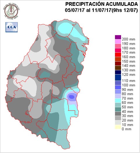 Es poco razonable tener expectativas acerca de que las precipitaciones inferiores a las normales puedan sostenerse con estos altos niveles de humedad. Si bien el corto plazo no plantea el regreso de eventos de importancia, difícilmente la primera quincena del mes de agosto, logre evitar los efectos convergentes de alguna perturbación atmosférica y la presencia de este aire tropical. Por otra parte en esta época del año, el este bonaerense y buena parte del centro sudeste de ER, suman al sur de Uruguay como el área donde tienden a concentrarse las lluvias.