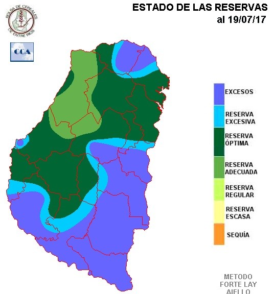 Las lluvias escasas han permitido que las zonas donde perduraban los excesos hídricos, logren evolucionar hacia una condición que puede considerarse más cercana a un estado óptimo de reservas. De todos modos, hay que decir, que el ambiente húmedo es persistente a lo largo del día y que sólo durante algunas horas la humedad relativa desciende a valores razonables. Esta variable se mantiene con notables desvíos positivos respecto de su comportamiento normal.