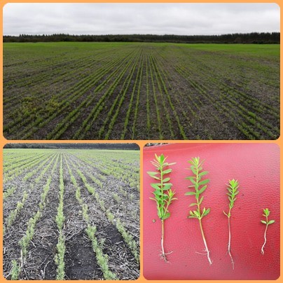 La evaluación de la condición del cultivo refleja que el 80% se cuenta con una buena situación y el 20% restante posee una calificación de regular. En este último caso se ubican las zonas que fueron afectadas por las lluvias intensas de los primeros días de julio, donde se perdió superficie y se afectó el desarrollo del cultivo dando como resultado plantas de tamaño heterogéneo. ( Foto Nº1) También hay sectores donde las heladas han provocado efectos negativos en la oleaginosa. En ambas situaciones se debió recurrir a resiembras.