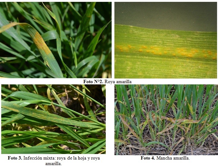 Las variedades de trigo sembradas en Entre Ríos en la presente campaña según el Informe semanal N° 779 del Proyecto SIBER (Gráfico 1), poseen buenos rendimientos sin embargo la mayoría son susceptibles a diferentes enfermedades, principalmente a roya amarilla (Foto 2) y roya del tallo. Otras, son muy afectadas por roya de la hoja (Foto 3) y mancha amarilla (Foto 4).