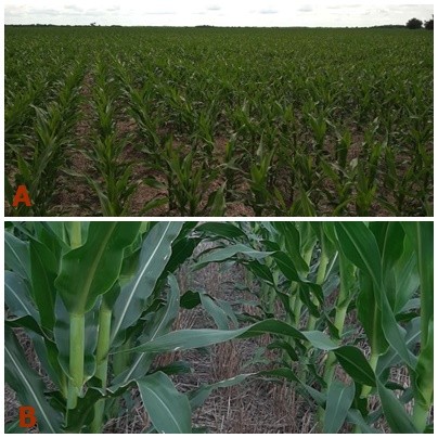 El estado fenológico se ubica entre V2 (dos desplegadas) a V10 (diez hojas desplegadas), ver Figura 2.