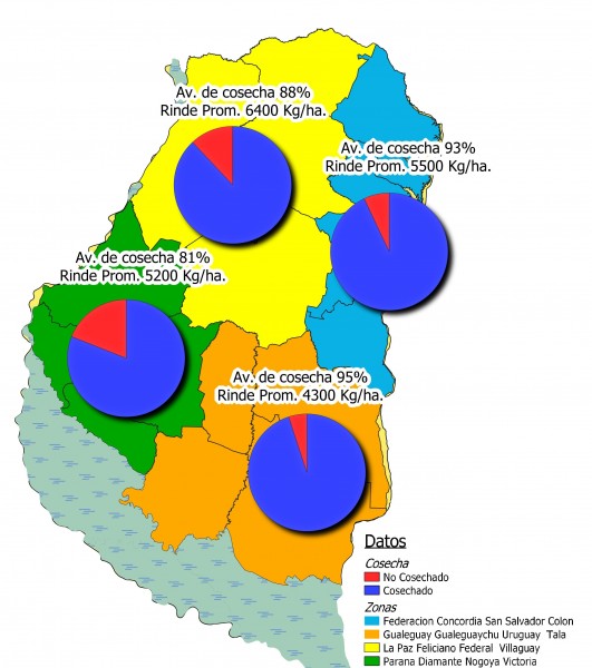 El avance de cosecha y su rendimiento por zonas en la provincia se muestran en la Figura 1.