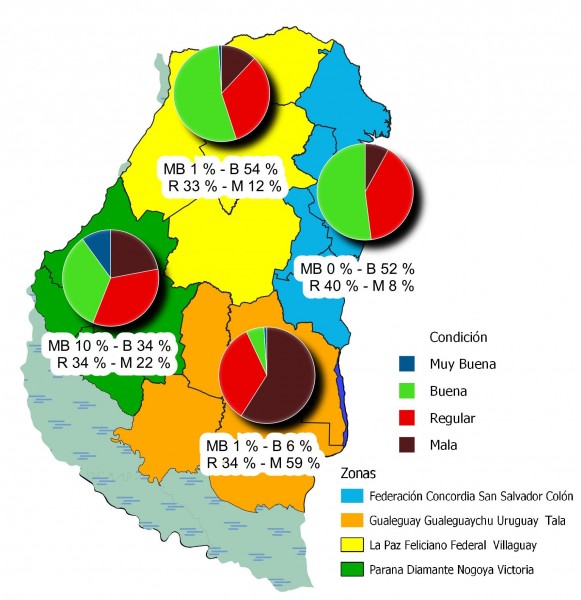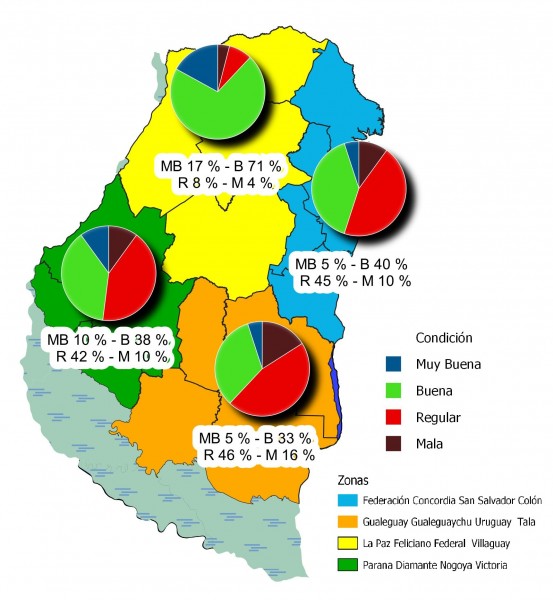La condición de soja de primera por zonas en la provincia de Entre Ríos se muestra en la Figura 2.