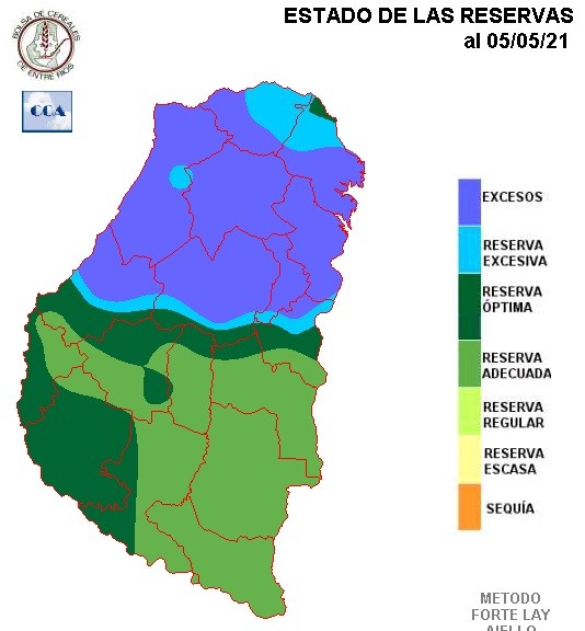 Como vemos, el balance hídrico plantea una condición de humedad donde la categoría adecuada es la que predomina. Esto es calculado a las 9 hs de ayer, es decir, sin tener en cuenta las precipitaciones que se vienen observando desde la madrugada de hoy y que continuarán hasta las primeras horas del sábado, posiblemente intensificando la oferta mañana.