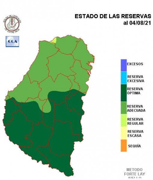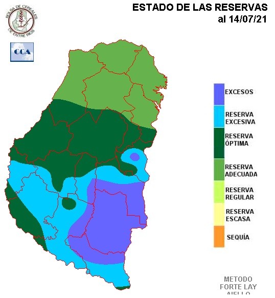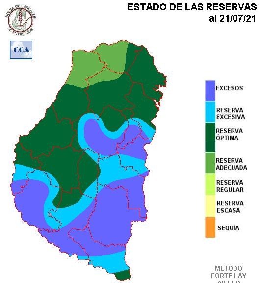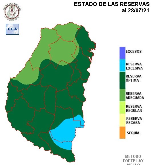 El balance hídrico se muestra favorable para gran parte de la provincia. Si bien los totales pluviales de junio y julio, fueron adecuados para la provincia, la situación actual es el corolario de un período más extendido sobre todo fundado en las abundantes lluvias de otoño. De no haberse dado ese comportamiento excepcional entre mediados de marzo y finales de mayo, la foto actual sería con reservas más ajustadas.