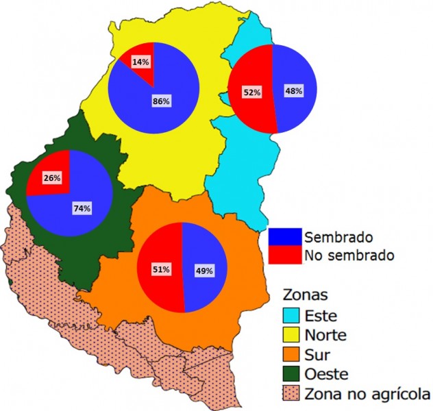 Las primeras proyecciones indican que el área sería igual o levemente inferior a lo relevado en el ciclo anterior (589.600 ha).