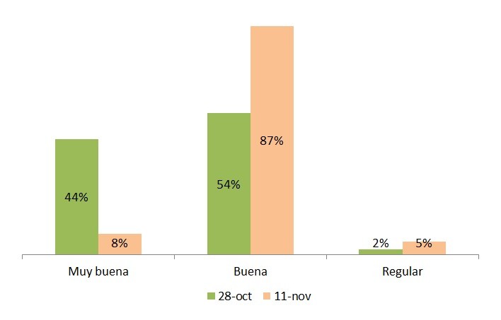 Esta situación ocasionó una caída en la condición del cultivo comparada con la que tenía en la última evaluación.
