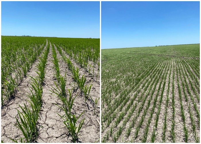 Los colaboradores resaltan que si bien en esta etapa la demanda de agua por parte del cultivo no es tan exigente como en la etapa reproductiva, en horarios de elevadas temperaturas las plantas muestran síntomas de strés hídrico (acartuchamiento de hojas). Figura 3.