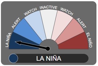 Esto hecho no es un hecho menor, ya que “La Niña” ocasiona normalmente una reducción en el monto de las precipitaciones en el trimestre noviembre – diciembre – enero.