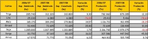 El siguiente cuadro muestra las cifras finales de los cultivos de fina para la Campaña 2007-08 en Entre Ríos.