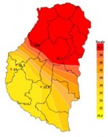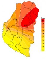 Notable disminución de las temperaturas mínimas durante la última semana, condición que permitió que la temperatura media diaria se mantuviera en torno a los 24ºC de promedio. Las máximas si bien se mantuvieron altas, no superaron, salvo algún caso puntual, los 38ºC. Estas condiciones de descenso térmico se vieron favorecidas principalmente por las precipitaciones que se produjeron durante la semana.