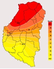 Lentamente los registros de temperatura se van adecuando al final de la temporada estival. Si bien las temperaturas máximas continuaron siendo altas (cercanas a los 38ºC), las mismas no presentaron continuidad diaria y por lo tanto el descenso de las mínimas, debido principalmente a la presencia de buenas lluvias, permitió un registro temperaturas medias que, durante la ultima semana, fueron cercanas a los 23ºC, valor muy acorde con la etapa final del verano.
