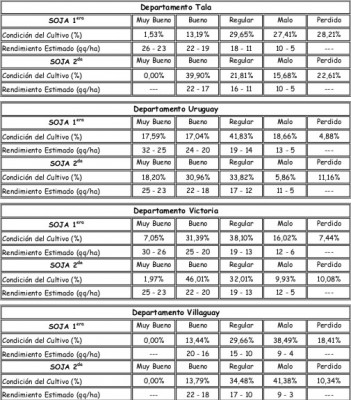 Una gran parte de la soja de primera padeció fuerte estrés hídrico durante el mes de enero, por lo cual la pérdida de rendimiento se concretará aún a pesar de la mejora que presentan las plantas. Posiblemente las sojas de segunda logren una mejor performance.