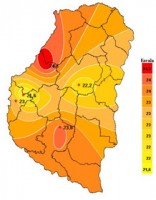 Manteniendo la tendencia de la semana anterior los registros de temperatura continuaron descendiendo lentamente. Las máximas todavía estuvieron altas durante algunos días pero ya lejos de los 41ºC de períodos anteriores. Las temperaturas mínimas fueron las que reflejaron con mayor claridad el descenso al ubicarse en promedio muy cerca de los 11ºC. Estas variaciones permitieron que durante casi todo el periodo predominara una temperatura media, casi otoñal, de 22ºC.