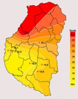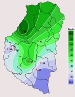 Si bien durante la última semana predominaron los cielos despejados algunas lluvias de moderada intensidad y escasa duración, registradas durante el fin de semana, mantuvieron baja la tasa de Radiación Solar media y la cantidad de grados/día acumulados, pero aportaron una cuota de agua importante para la recuperación de las reservas del suelo en vistas a los próximos cultivos. Al igual que en el periodo anterior los chaparrones mantuvieron muy alta la Humedad Relativa ambiente y la cantidad de horas de mojado foliar acumuladas.