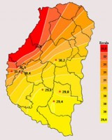 Como anticipamos que ocurriría en el informe anterior el dato más relevante de los últimos 7 días fue el fuerte descenso de las temperaturas mínimas que, con registros de 9ºC, se ubicaron casi en la mitad de los valores medidos en el periodo anterior. Las máximas también sufrieron un importante descenso, pero los 30ºC registrados todavía pueden considerarse elevados para esta época del año.