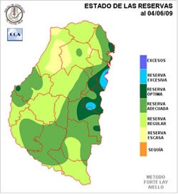 Las precipitaciones recibidas en el territorio entrerriano han servido para mantener las reservas en niveles regulares para una pradera pero suficientes para las sementeras recientemente implantadas o las sembradas en semanas anteriores. Los almacenajes de agua útil no están holgados para trigo, pero permiten transitar sin exigencias estas primeras etapas fenológicas.