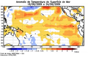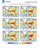 Y finalmente, si observamos en la Figura siguiente (NOAA, USA) los pronósticos de temperatura superficial del Pacífico Central, NOTAMOS QUE PERSISTIRA EL FENOMENO NIÑO HASTA DESPUES DE TERMINADA LA CAMPAÑA GRUESA 09/10, sabiendo que este es el mejor escenario de gran escala para la provisión de lluvias entre noviembre a marzo en Entre Ríos.