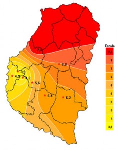 En el departamento Villaguay y Tala los daños se ubican desde el 15% al 30% de pérdidas de plantas con respecto a la densidad total. Los mayores perjuicios se reportan en el departamento Nogoyá donde la pérdida de plantas alcanzan hasta el 50% del stand, en una superficie que abarca aproximadamente 35% de lo sembrado.