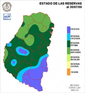 Con pocas exigencias de las coberturas y la atmósfera, las reservas de humedad se mantienen en un nivel óptimo, persistiendo los suelos saturados principalmente en el sudeste de la provincia. Los departamentos Nogoyá, Tala, Paraná, Victoria y Diamante, han recuperado completamente el perfil de humedad con las últimas lluvias y pueden transitar el resto del invierno sin mayores demandas hídricas. El norte presenta un estado de humedad adecuado.