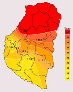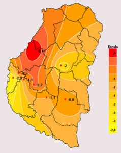 El norte se ha secado hasta caer a reservas regulares. Recordamos que en este sector el evento pluvial principal del mes de julio no ha sido tan generoso como en el resto del territorio provincial. Ésta situación se proyecta a la provincia de Corrientes con un déficit más marcado. También zonas del noroeste de Uruguay tienen reservas regulares.