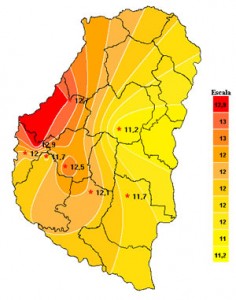 El balance hídrico comienza a mostrar retrocesos de importancia en el oeste y el norte de la provincia. Si bien aún no se llega a niveles de sequía, la falta de lluvia y las altas temperaturas están acelerando el proceso de desecamiento, el cual ya es muy notorio en superficie.