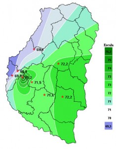 Si bien durante los últimos siete días se produjeron algunas precipitaciones, estas fueron aisladas y de muy bajo acumulado. La mayor parte de los días fueron de escasa nubosidad, lo que benefició el registro de una elevada tasa de Radiación Solar Media. Por su parte el aumento de la temperatura de los últimos días, sumado a la dirección de los vientos, predominantes del sector Norte, aumentaron fuertemente el contenido de humedad Relativa del aire y por consiguiente las horas de mojado foliar acumuladas.