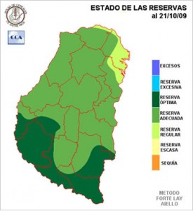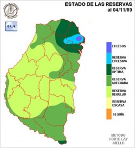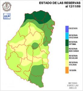 El retroceso de las reservas hacia la categoría regular o incluso escasa no sorprende. La oferta de agua no ha sido suficiente para compensar las exigencias atmosféricas y la demanda de una pradera que se simula como cobertura. Sobre el centro de la provincia, un sector reducido en el entorno de Villaguay, mantiene reservas adecuadas habiendo sumado lluvias del orden de los 50 milímetros. Es decir gran parte de la provincia está por lo menos 30 milímetros por debajo de lo necesario para lograr un nivel adecuado de reserva.