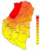 Los últimos siete días prácticamente no han mostrado cambios en cuanto a los registros térmicos respecto de los valores de la semana anterior. A pesar de las abundantes lluvias registradas las temperaturas se han mantenido altas, con máximas de 34ºC. El cambio más destacado respecto del período anterior se dio en las temperaturas mínimas que superaron en casi 5ºC las anteriores marcas, trepando en general hasta los 18ºC. Por su parte las medias diarias no sufrieron variación manteniéndose en torno de los 24ºC.