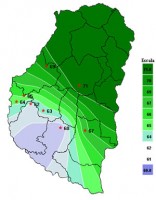 El departamento con mayor progreso es Diamante (21%), La Paz, Paraná, Nogoyá, Victoria y Villaguay muestran una evolución que va del 10% al 20% y los departamentos más atrasados son los del norte Feliciano, Federación, Concordia, Federal, San Salvador, Colon y el sureste provincial Gualeguay, Gualeguaychú, Tala y Uruguay con un grado de avance que va del 0% al 10%.