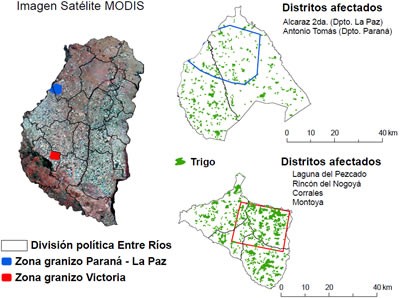 El primer evento afectó un área de aproximadamente 50.980 ha, ubicándose entre el norte del departamento Paraná y el sur de La Paz; mientras que el segundo hecho abarcó una superficie cercana a las 36.230 ha sobre el noreste del departamento Victoria.
