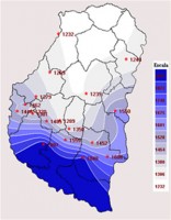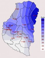 Los mapas comparativos de precipitación acumulada para el periodo enero – diciembre muestran claramente como la difícil situación agropecuaria que atravesó la provincia en el 2008, con un déficit de lluvias de entre un 30 y un 70% respecto del año anterior, fue cambiando durante el 2009. El mapa correspondiente a este año muestra una recuperación de los valores históricos, con registros acumulados muy similares, e incluso en algunos casos superiores a los del 2007. Esta recuperación explica claramente el motivo por el cual nos encaminamos a muy buenos valores de rendimiento en las próximas cosechas. Es necesario destacar que si bien los valores indicados en el mapa muestran una situación normal, la recuperación de los montos de lluvia se produjo, fundamentalmente, durante el ultimo cuatrimestre del año y luego de un periodo de intensa sequía, en coincidencia con el establecimiento del fenómeno “NIÑO” ya que mas del 50% del total de lluvia acumulada graficada en el mapa se registró entre los meses de octubre y diciembre del 2009.