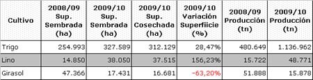 El siguiente cuadro compara los datos estadísticos finales de trigo, lino y girasol de las dos últimas campañas agrícolas en Entre Ríos.
