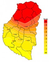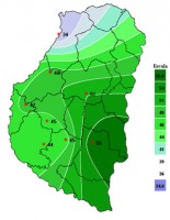 En el mapa que resume las lluvias desde el jueves 15 hasta las 9 hs de ayer, predominan los acumulados inferiores a 5 o 10 milímetros, mayormente acumulados entre lunes y martes. Claramente se destaca el máximo del departamento Federal, donde se desarrollaron algunas celdas de tormenta que no lograron extenderse con la misma eficacia al resto del norte provincial. Obsérvese que sobre el departamento La Paz prácticamente no se han registrado precipitaciones, salvo excepciones puntuales hacia el sur. Las tormentas en el noreste entrerriano son una extensión de la importante actividad observada en el sudeste de Corrientes sur de Brasil y las vecindades de Uruguay.