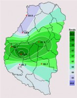 Hernandárias: 100 ha de soja con un 10% de daño, 15 ha de soja con un 7% de daño,120 ha de soja con un 20% de daño.