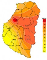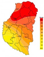 La presencia de una masa de aire cálido y muy húmedo, durante gran parte de esta semana, revirtió moderadamente la tendencia en descenso de los registros térmicos que venía manifestándose en los últimos períodos. Las temperaturas mínimas no fueron tan extremas como la semana anterior y se ubicaron próximas a los 7ºC. También las máximas mostraron un leve ascenso llegando a los 24ºC. Este escenario estuvo acompañado de algunas lluvias muy aisladas y de la presencia de nieblas y neblinas matinales.
