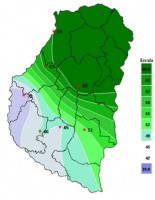 Es interesante tener en cuenta la distribución normal de las precipitaciones en los próximos 45 días. A partir de esta información podemos posicionar las posibilidades con que cuentan las distintas zonas trigueras a la hora de mejorar su perfil de humedad. La estadística 1973 -2009, nos permite graficar en un mapa la oferta normal para este período.